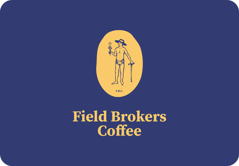 With that vibe running through us, we were ready to brand Field Brokers Coffee: name front and center, symbol loud and proud.
